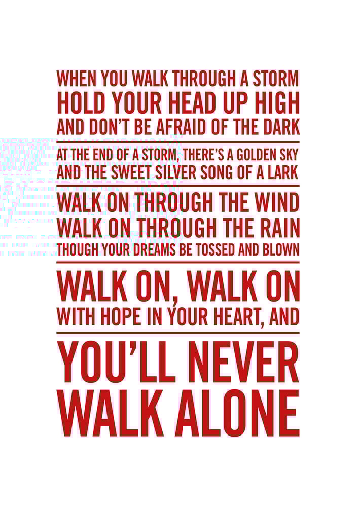 When you walk through a storm keep your chin up high and don't be afraid of the dark at the end of a storm is a golden sky and the sweet silver song of a lark walk on through the wind walk onCheck out our youll never walk alone print selection for the very best in unique or custom, handmade pieces from our wall hangings shopsTesco Painting Store has All Kinds of You'll Never Walk Alone Lyrics Canvas Art Print Poster Liverpool Football Club Canvas Nordic Style Painting Home Wall Decoration,3D Self Adhesive