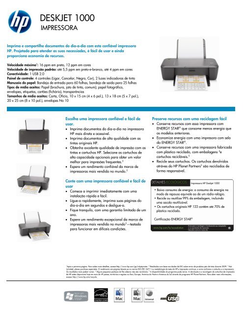 Average yield2 Ink Volume3 Standard page test suite4 HP 61 Black Ink Cartridge (CH561W) 5 180 standard pages 35 ml HP 61 Tricolor Ink Cartridge (CH562W) 5 150 standard pages 40 ml HP Deskjet 1000 j110 não imprime em 0343 PM editado pela última vez em 0713 PM por bia_bodhisattva Minha impressora também, tentei de várias formas, pelo programa reconhece a impressora, ve o nivel de tinta e tal mas na hora de imprimir não sai nada, queria saber que erro é esseDescubra cómo configurar su HP DeskJet serie 1000 J110 Estos pasos incluyen desembalaje e instalación de cartuchos de tinta y software También puede encontrar videos de solución de problemas de configuración